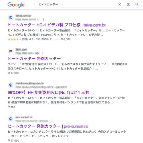 ところが先日、Googleで「ヒイトカッター」を検索してみると、検索結果に変なページがリストアップされることに気が付きました。
